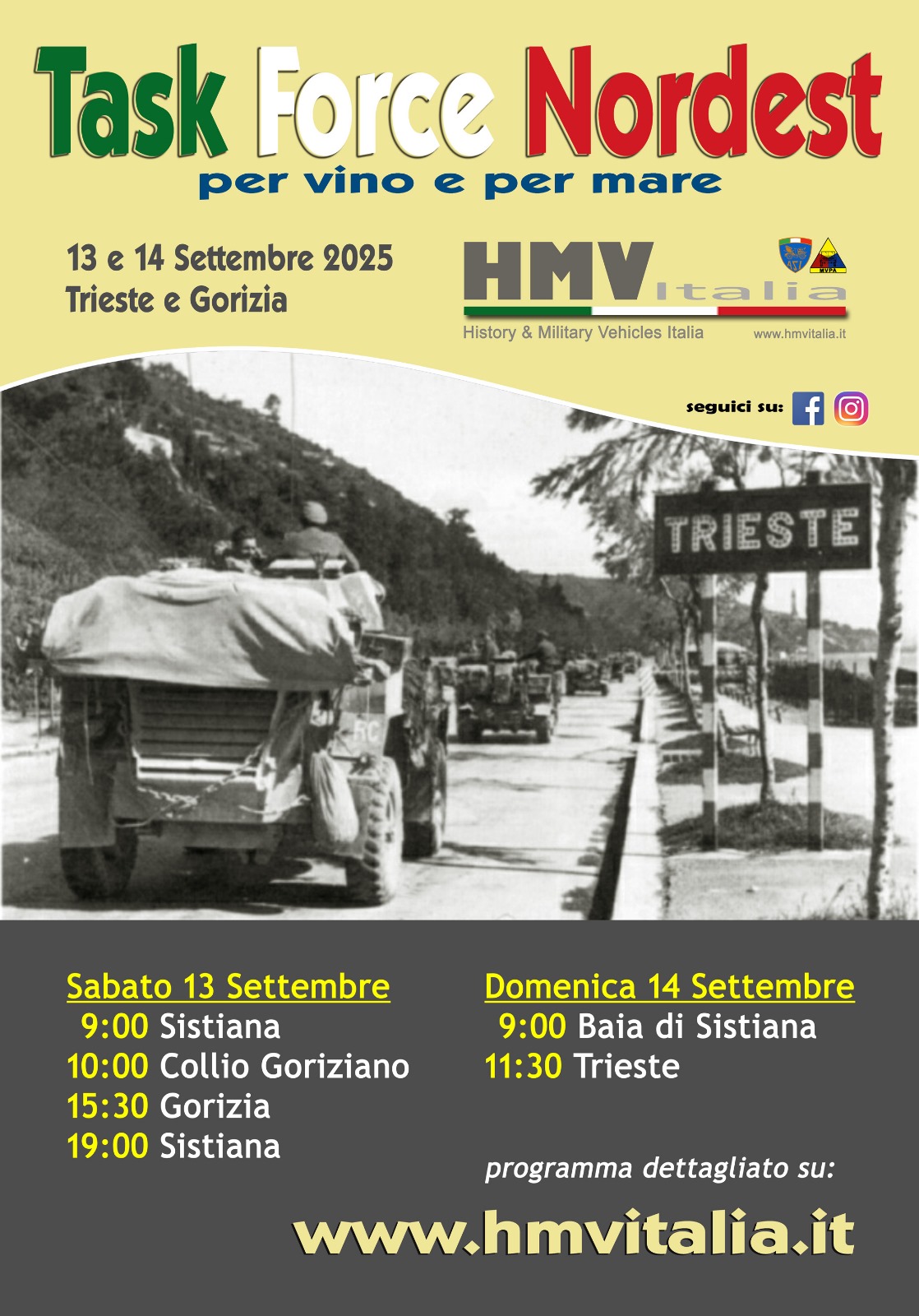9:00     esposizione veicoli presso il Parco Caravella di Baia di Sistiana (sito della Base dei Mini-Sommergibili della Kriegsmarine)